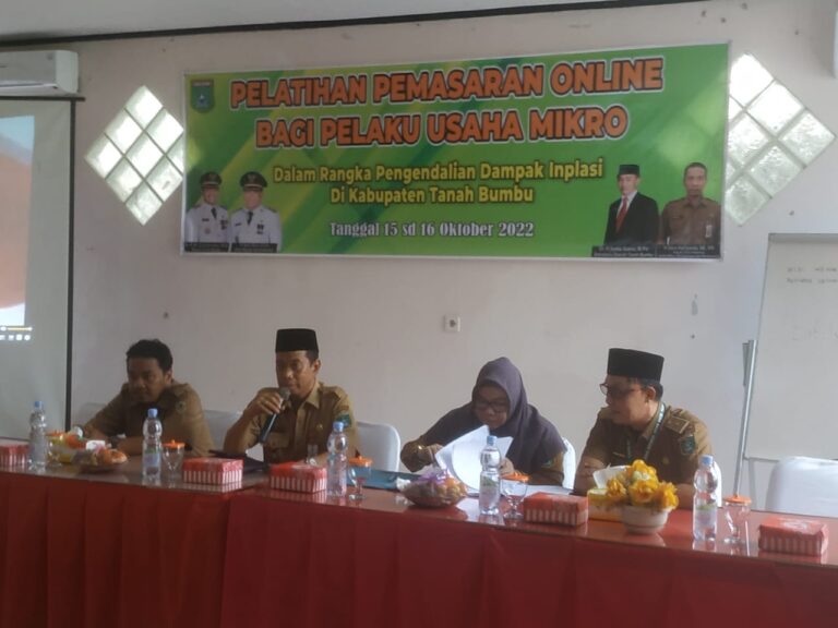 Bacakabar.id, BATULICIN – Dinas Koperasi, Usaha Mikro Perdagangan dan Perindustrian (DKUMP2) Kabupaten Tanah Bumbu adakan pelatihan pemasaran online bagi pelaku usaha mikro berlangsung di salah satu hotel di Simpang Empat Selasa, (15/11/2022).