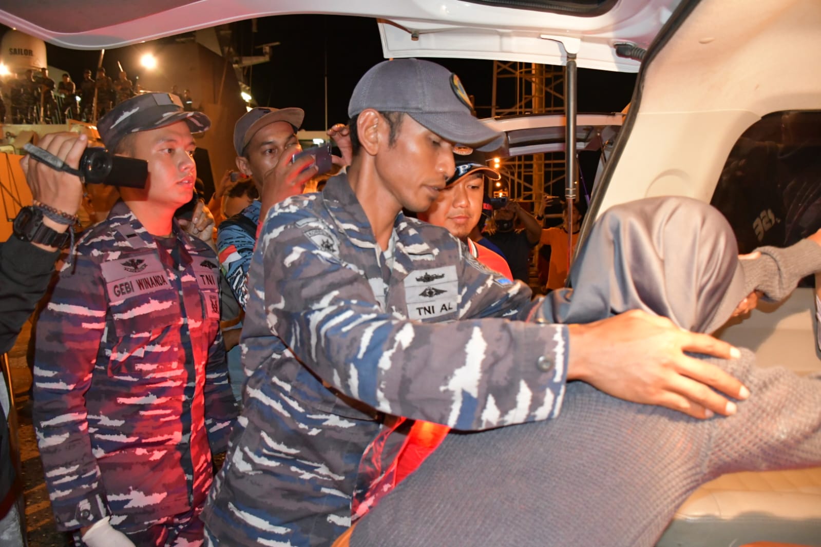 KRI Sultan Hasanuddin-366 BKO Guspurla Koarmada II bersama pihak terkait lainnya langsung mengevakuasi penumpang yang selamat, tercatat korban yang berhasil dievakuasi ada 4 orang.