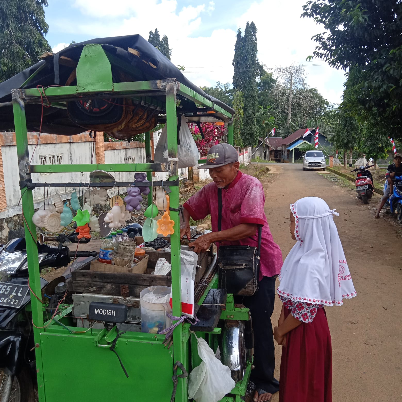 “Yah, demi untuk mencukupi kebutuhan keluarga mas, aku rela mengendari motor roda tiga ini untuk menjajakan dagangan sejauh puluhan kilo meter,” ujar Munari.