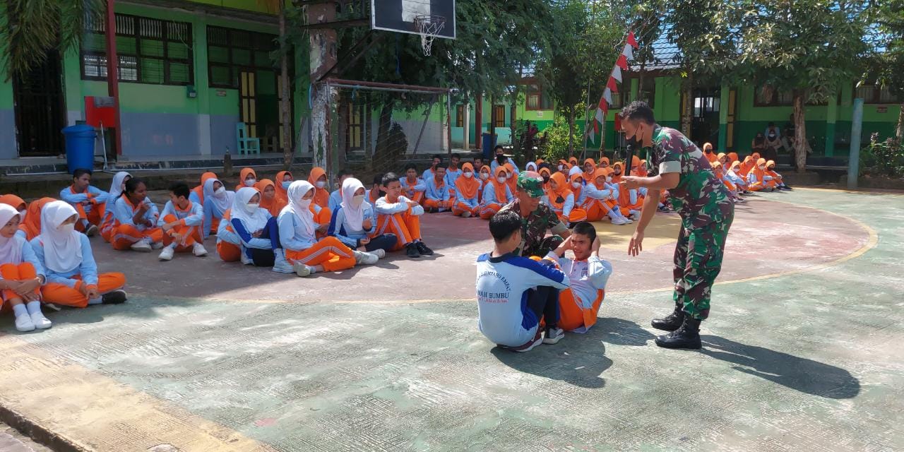 Bacakabar.idBATULICIN, Babinsa Korami 1 Bacakabar.id 022-01/Simpang Empat Serka Edi Purwanto, bersama Serda Yudha Wijaya, mengajarkan materi wawasan kebangsaan dan Peraturan Baris Berbaris (PBB) kepada siswa SMKN 2 Simpang Empat, Kabupaten Tanah Bumbu.