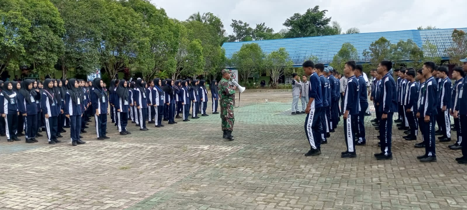 TANAH BUMBU – Untuk mewujudkan pelajar Pancasila yang Berakhlak Mulia, Berdedikasi Tinggi, Cinta Tanah Air dan Peduli Lingkungan, para Babinsa Koramil di jajaran Kodim 1022/Tanah Bumbu, berikan pembekalan materi Wawasan Kebangsaan (Wasbang) dan Peraturan Baris Berbaris (PBB), pada Siswa/i baru yang masuk SMP maupun SMA kabupaten Tanah Bumbu yang menjalankan Masa Pengenalan Lingkungan Sekolah (MPLS), Kamis (20/07/2023).
