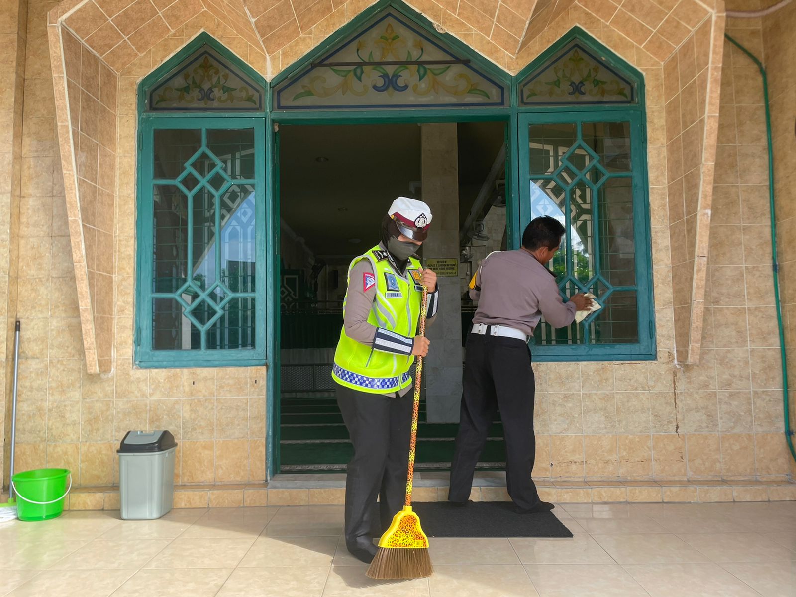 Bacakabar.id – BANJARMASIN, Direktorat Lalulintas Polda Kalimantan Selatan melakukan Bakti Sosial, membersihkan tempat ibadah Masjid Darussalam yang ada di Komplek Pondok Kelapa, Banjarmasin Utara, Kota Banjarmasin, Selasa (14/6/2022).