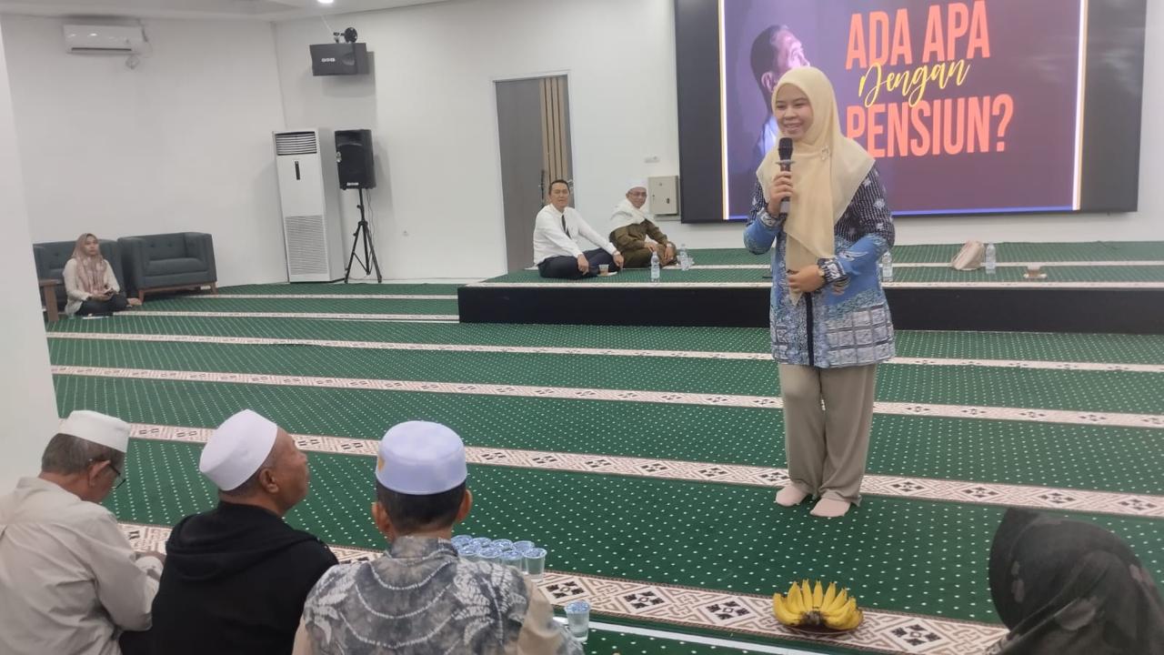 Narasumber dalam Pengajian Rutin dan Sharing Kesehatan untuk nasabah pensiunan di Masjid Apung Siring Laut, Selasa (9/9/2025). Kegiatan ini wujud apresiasi dan jaga silaturahmi (Foto dok Istimewa).