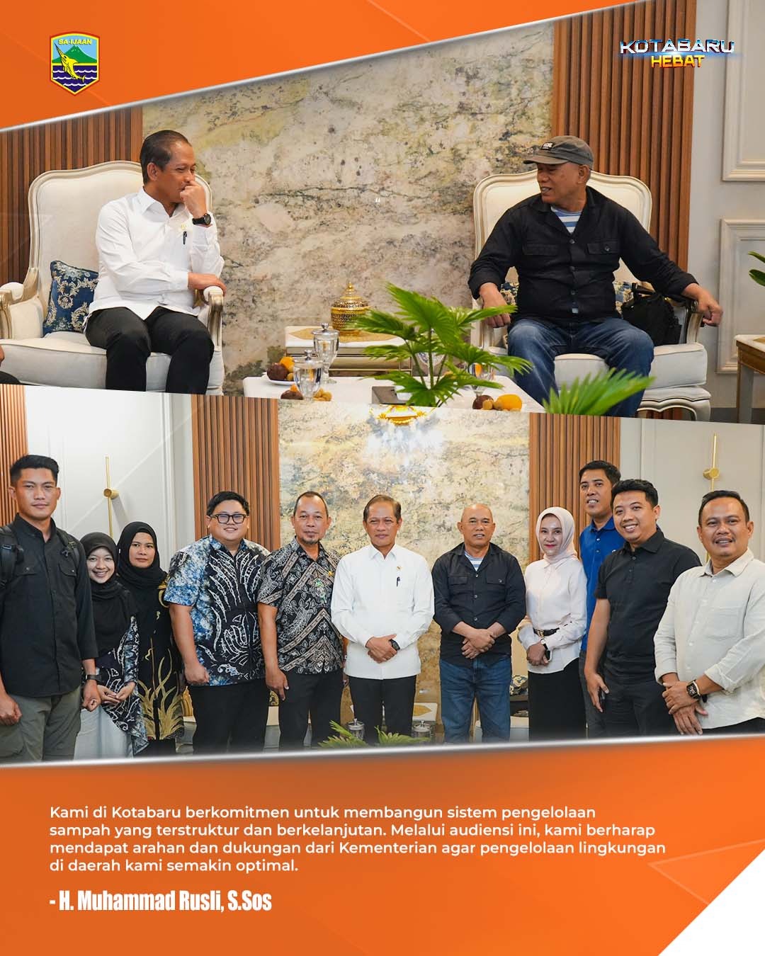 Dalam audiensi tersebut, Bupati Rusli menyampaikan rencana strategis Pemkab Kotabaru untuk membangun sistem pengelolaan sampah yang terstruktur dan berkelanjutan.