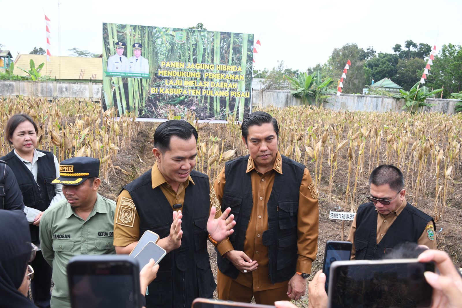 Pulang Pisau – Bupati Pulang Pisau, H. Ahmad Rifa’i, didampingi Wakil Bupati H. Ahmad Jayadikarta, memimpin langsung kegiatan panen jagung hibrida di Desa Mentaren I, Kecamatan Kahayan Hilir, Senin (8/9). Kegiatan ini merupakan wujud nyata komitmen Pemkab dalam memperkuat ketahanan pangan dan menekan laju inflasi daerah.