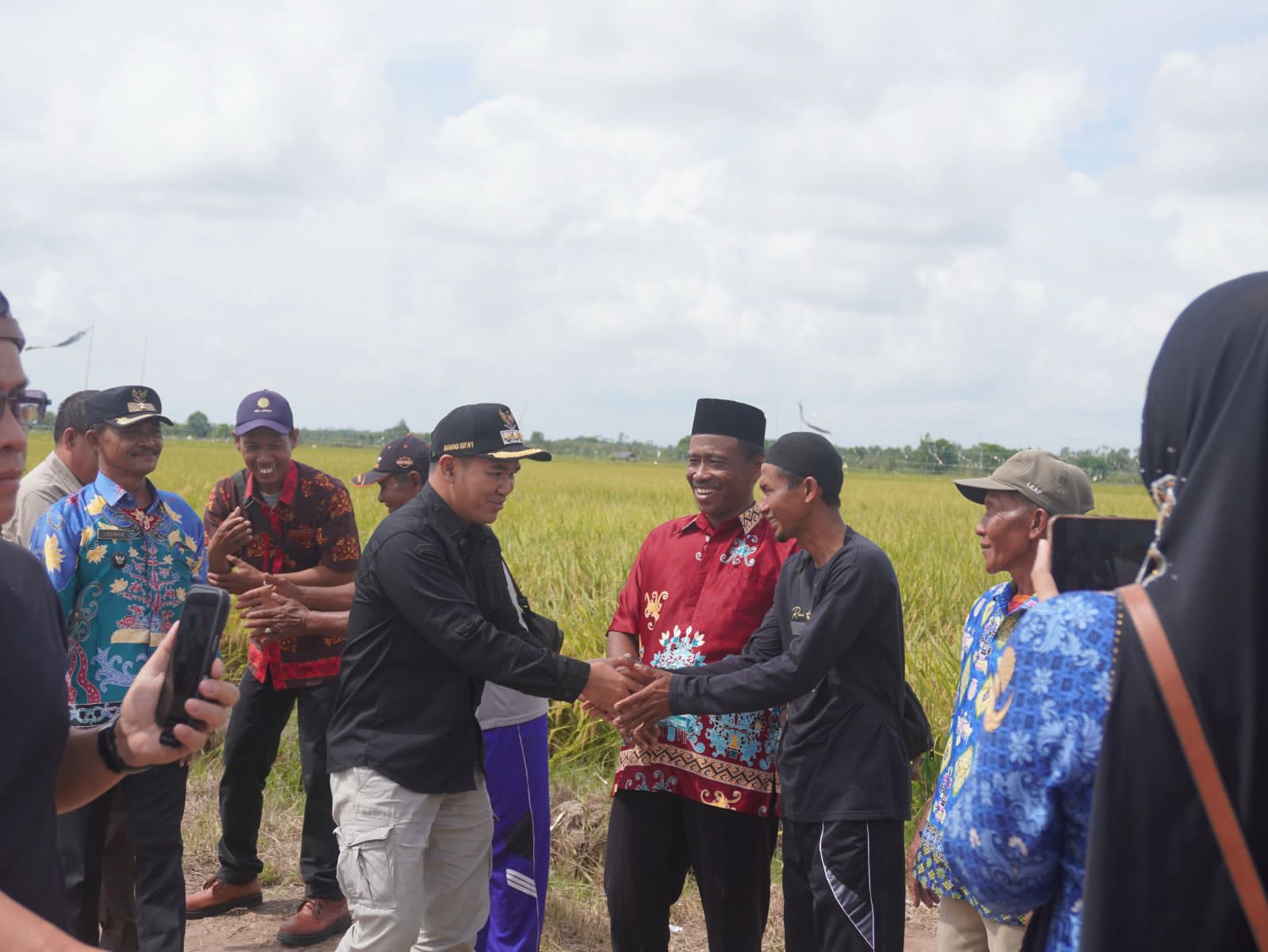 Bupati Pulang Pisau H. Ahmad Rifa’i menghadiri syukuran panen padi di Desa Mulyasari, Kecamatan Pandih Batu, Kamis (17/7/2025).
