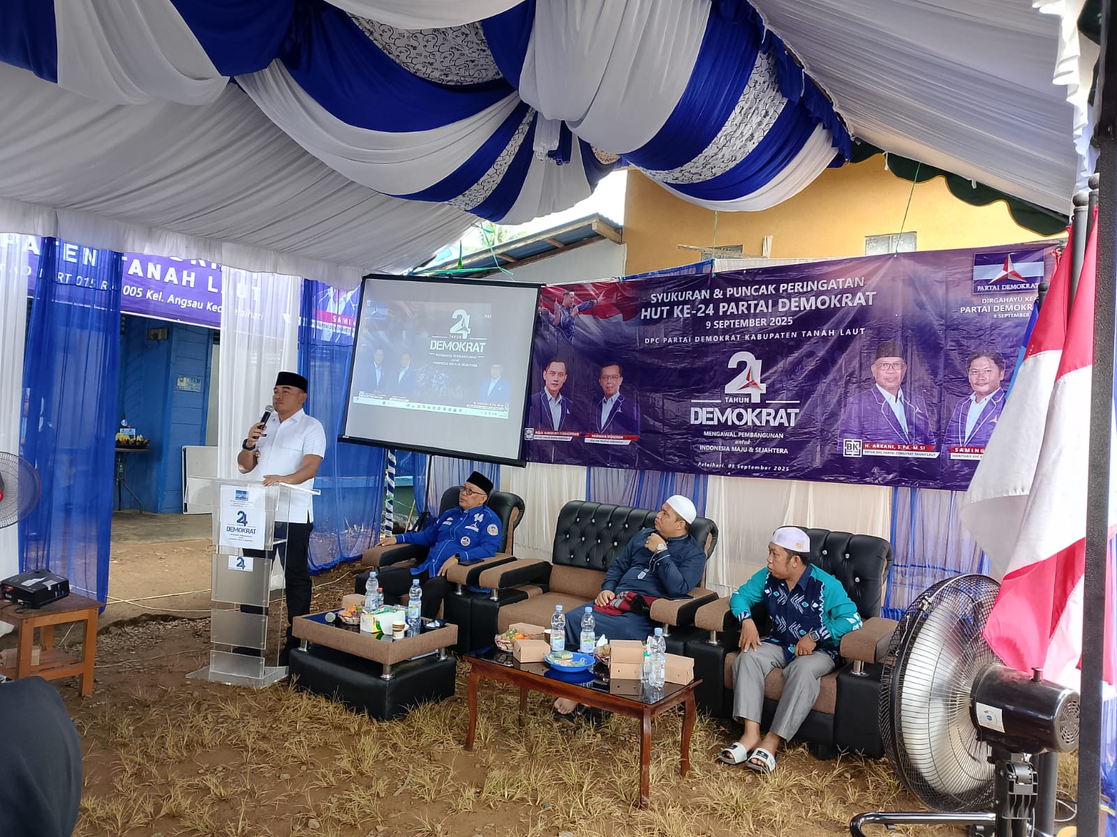 Pelaihari – Bupati Tanah Laut H. Rahmat Trianto menghadiri perayaan ulang tahun ke-24 Partai Demokrat di Kabupaten Tanah Laut. Selasa (9/9/2025). Dalam acara tersebut, ia menegaskan komitmennya untuk mendukung pembangunan daerah dan meningkatkan kesejahteraan masyarakat.