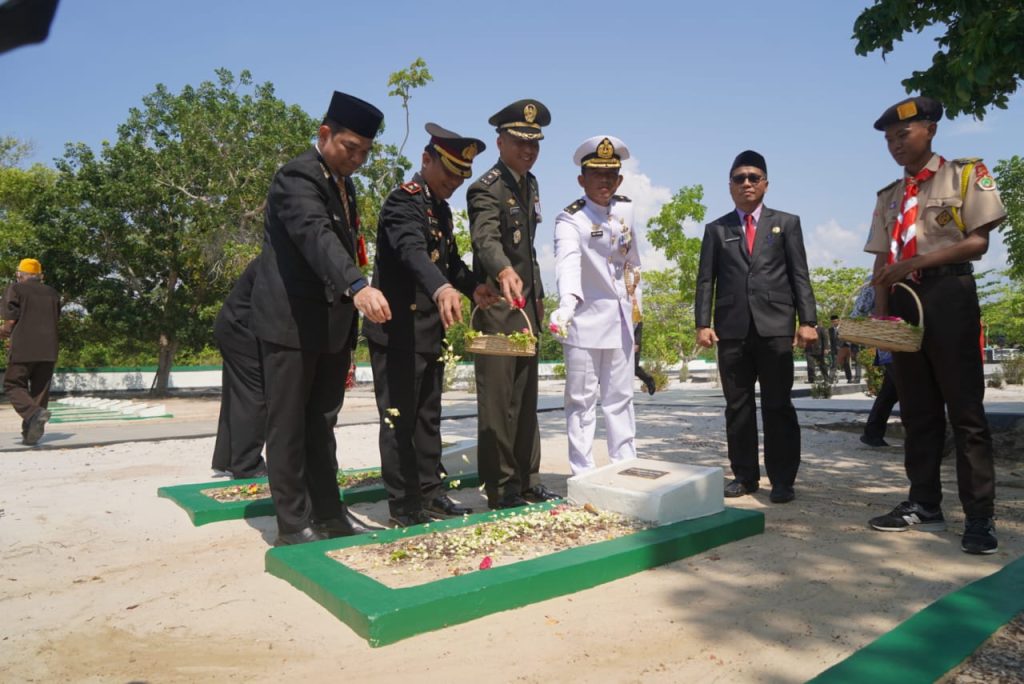 Setelah itu tabur bunga di lakukan yang di mulai dari Asisten Bidang Pemerintahan dan Kesra Eka Sapruddin, hingga secara bersamaan dengan unsur Forkopimda lainnya.