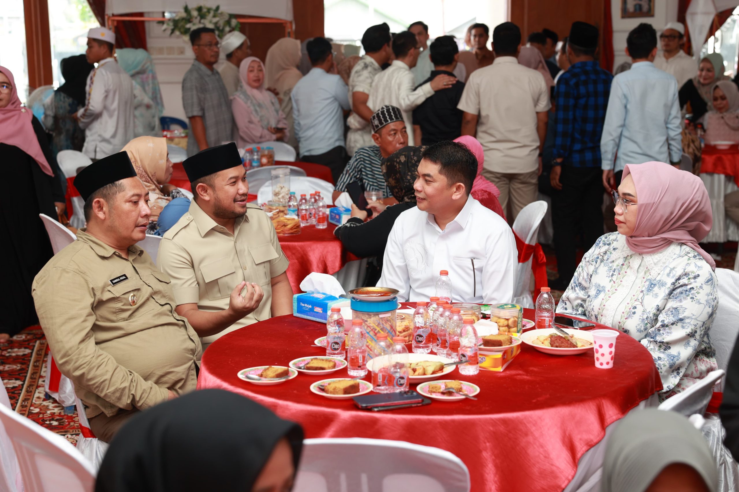 Suasana akrab terlihat saat Bang Arul berbincang dengan H.M. Alpiya Rakhman dan Syamsul Rizal, menandakan kuatnya hubungan antar-pemimpin daerah.
