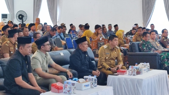 Bupati Tanah Bumbu Andi Rudi Latif saat mengikuti peluncuran nasional Koperasi Merah Putih secara virtual dari Gedung Mahligai Bersujud, Senin (21/7/2025).