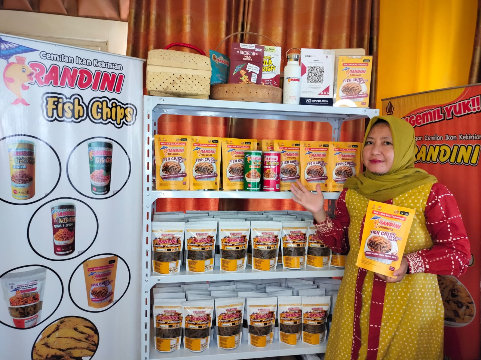 Siti Nurjanah, pemilik Andini Fish & Food, menunjukkan camilan ikan kriuk hasil inovasi yang sukses menembus pasar ekspor hingga Hong Kong.