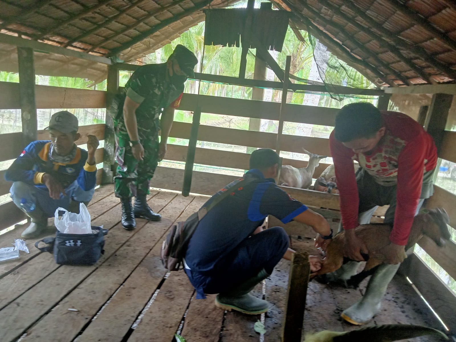 Kegiatan yang berlangsung di wilayah binaan Sertu Golkar Natanael Panjin dan Koptu Agus Apriadi Babinsa Koramil 1022-02 Kusan Hilir mendampingi pelaksanaan Vaksin Campak dan pemberian vitamin 61 ekor kambing oleh dokter hewan Aini, mantri hewan M.Syafi’i dan mantri hewan Yayan. Senin, (28/11/2022).
