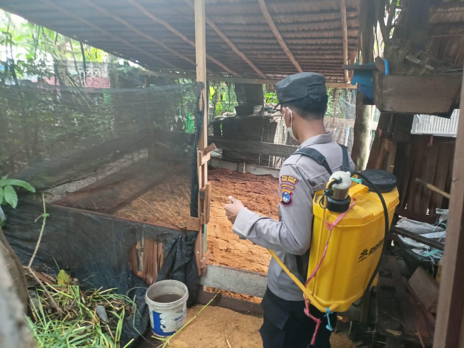 Bacakabar.id – Tanah Bumbu, Jajaran Polsek Kusan Hilir melakukan penyemprotan disinfektan di lokasi penjualan Hewan Kurban milik bapak Muhtar, yang ada di lingkungan RT02 Kecamatan Kusan Hilir.