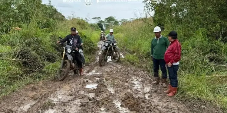 Bahkan, ia harus menembus medan sulit dengan sepeda motor trail demi memastikan kondisi jalur vital tersebut, Minggu (15/3/2026).