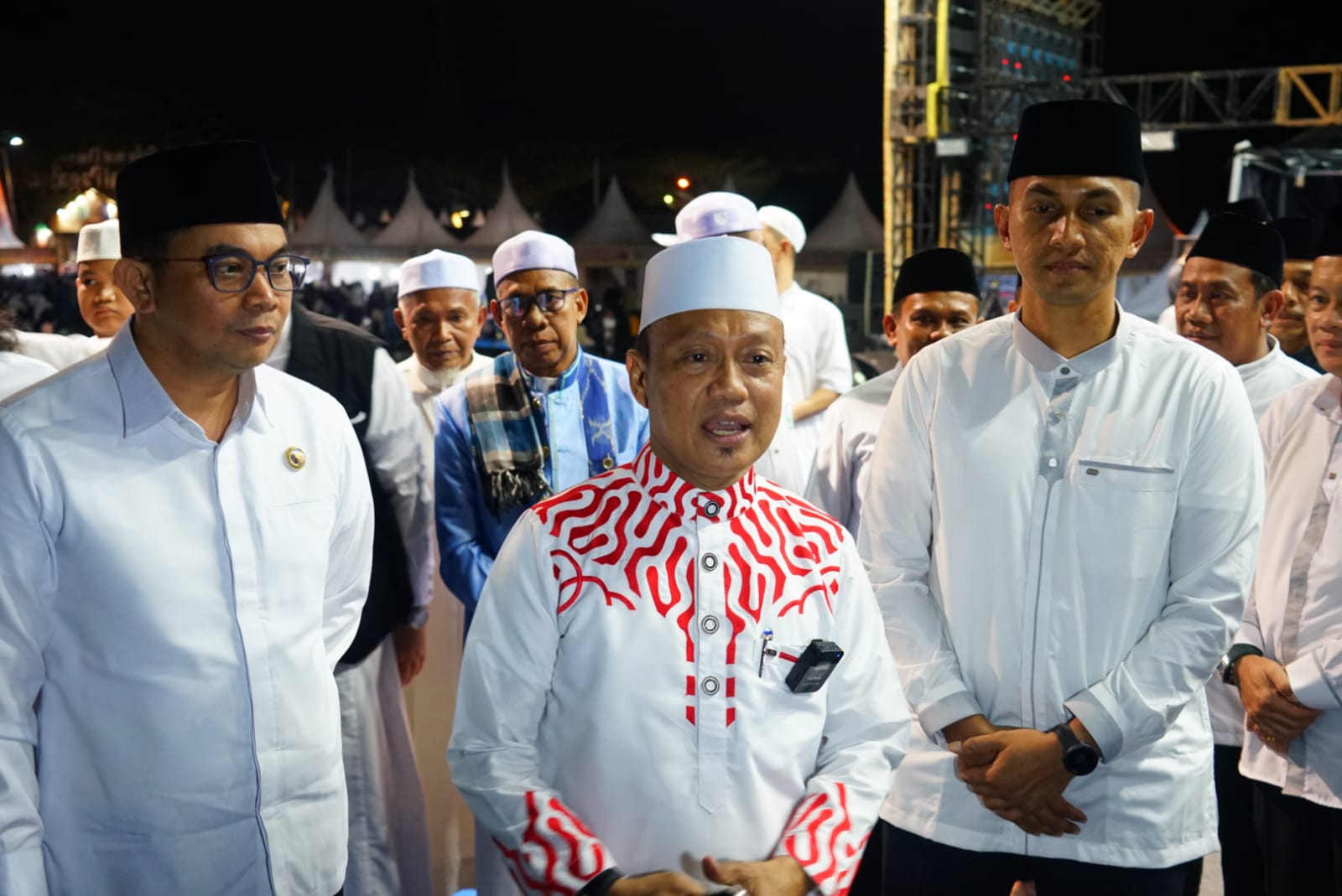 Dandim 1022/Tnb Letkol Inf Zierda Aulia Salam (kiri) Bupati Andi Rudi Latif (kanan) saat Tabligh Akbar bersama Ustaz Das’ad Latif dalam rangka HUT ke-22 Tanah Bumbu, Kamis malam (8/5/2025).