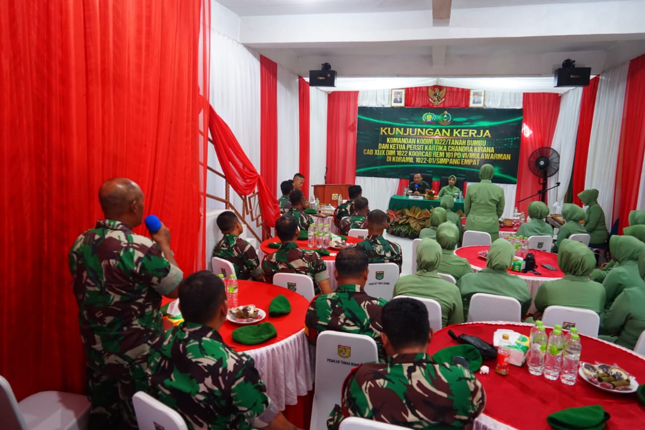 Tanah Bumbu – Komandan Kodim 1022 Tanah Bumbu, Letkol Inf Boni Berdian, S.E, beserta Ketua Persit Kartika Chandra Kirana (KCK) Cabang XLIX Dim 1022 Ny. Mutia Boni Berdian dan rombongan melakukan kunker perdana ke Koramil jajaran.