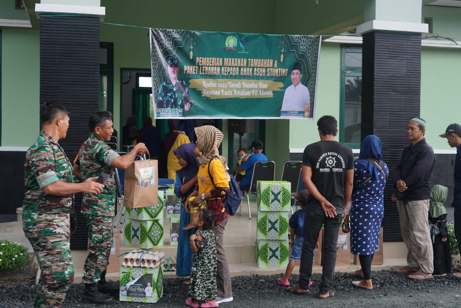 “Selaku bapak asuh anak stunting di wilayah Tanah Bumbu, komitmen kami adalah untuk membantu pemerintah dalam menurunkan angka stunting dengan berbagai cara dan upaya, salah satunya adalah dengan bekerjasama dengan Lazis Assalam Fil Alamin untuk pemberian makanan tambahan agar asupan nutrisi anak asuh stunting dapat meningkat,”ungkap Dandim.