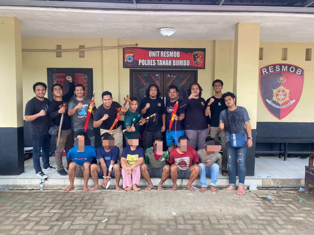 Dengan menaiki mobil Agya warna putih keenam pelaku yang terdiri dari 5 orang laki-laki dan 1 perempuan mendatangi korban membawa senjata tajam parang jenis mandau.