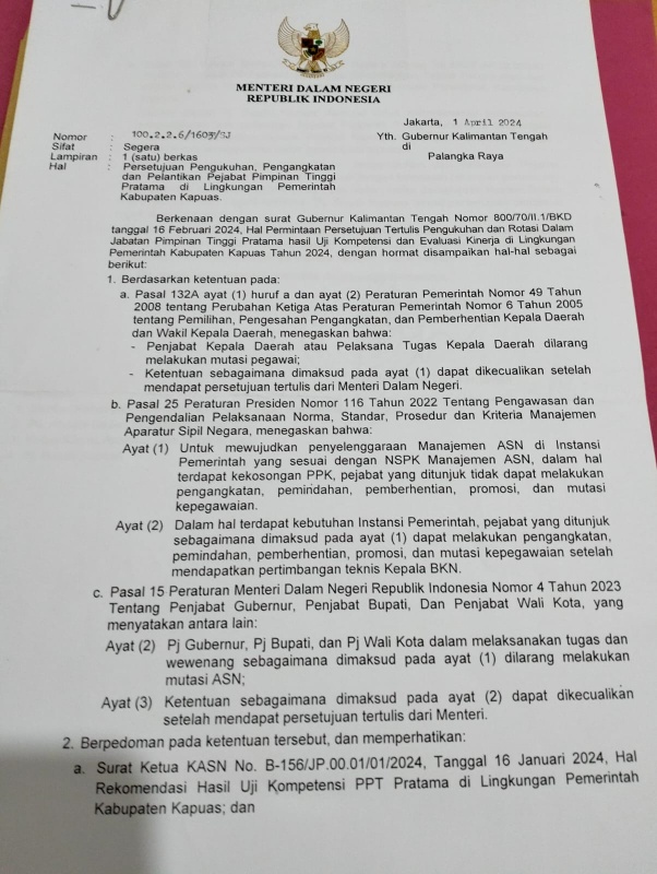Surat tersebut menjawab surat edaran yang dikeluarkan Kemendagri RI pertanggal 29 Maret 2024 beberapa waktu yang lalu, yang mana poin penting dalam surat tersebut menerangkan kepada seluruh pejabat negara mulai dari tingkat gubernur hingga Bupati, dilarang melantik dan memutasi pejabat di lingkup daerahnya masing-masing, terhitung 22 Maret 2024. Kecuali atas dasar persetujuan tertulis yang dikeluarkan oleh Mendagri RI.