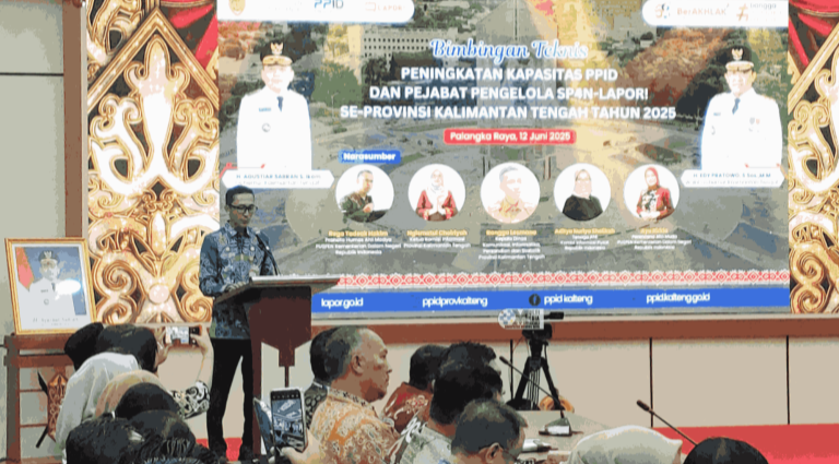 Murung Raya, bacakabar – Diskominfo Statistik dan Persandian (Diskominfo SP) Kabupaten Murung Raya (Mura) mengikuti Bimbingan Teknis (Bimtek) Peningkatan Kapasitas Pejabat Pengelola Informasi dan Dokumentasi (PPID) serta Pengelola SP4N-LAPOR se-Kalimantan Tengah, Kamis (12/6/2025).