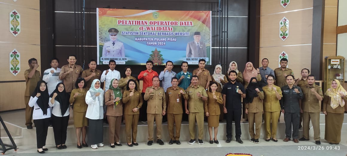 Pada kesempatan itu Asisten 1 Bidang Pemerintahan dan Kesra Pulang Pisau Hayes Hendra membuka kegiatan pelatihan operator data (e-walidata) Statistik Sektoral Berbasis Website Kabupaten Pulang Pisau Tahun 2024. Berlangsung di Aula Kesehatan Pulang Pisau