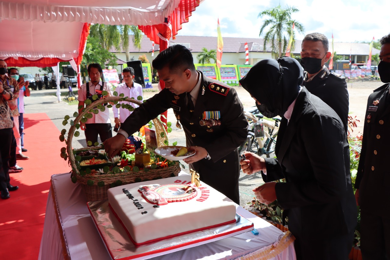 Usai melaksanakan upacara, Kapolres Pulang Pisau dan sejumlah pimpinan SOPD, tokoh agama dan tokoh masyarakat menyaksikan langsung pemotongan tumpeng.