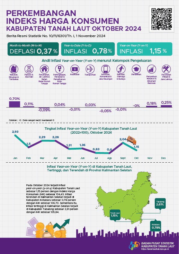 Indeks Harga Konsumen Tanah Laut Deflasi 0,37 Persen di Oktober 2024