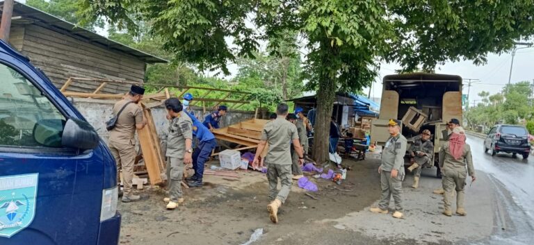 Bacakabar.id – BATULICIN, Satpol PP dan Damkar Kabupaten Tanah Bumbu membongkar lapak Pedagang Kaki Lima (PKL) yang berjualan di sepanjang jalan Pusat Niaga Bersujud sampai jembatan Batulicin, Senin (11/7/2022).