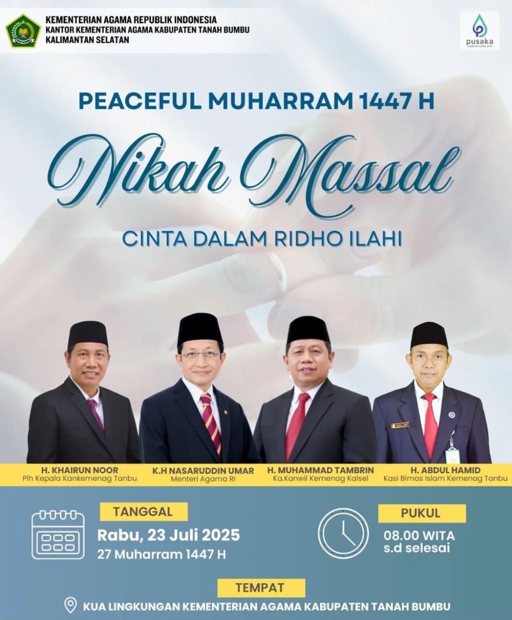 Rabu, 23 Juli 2025, di masing-masing Kantor Urusan Agama (KUA) kecamatan se-Kabupaten Tanah Bumbu.