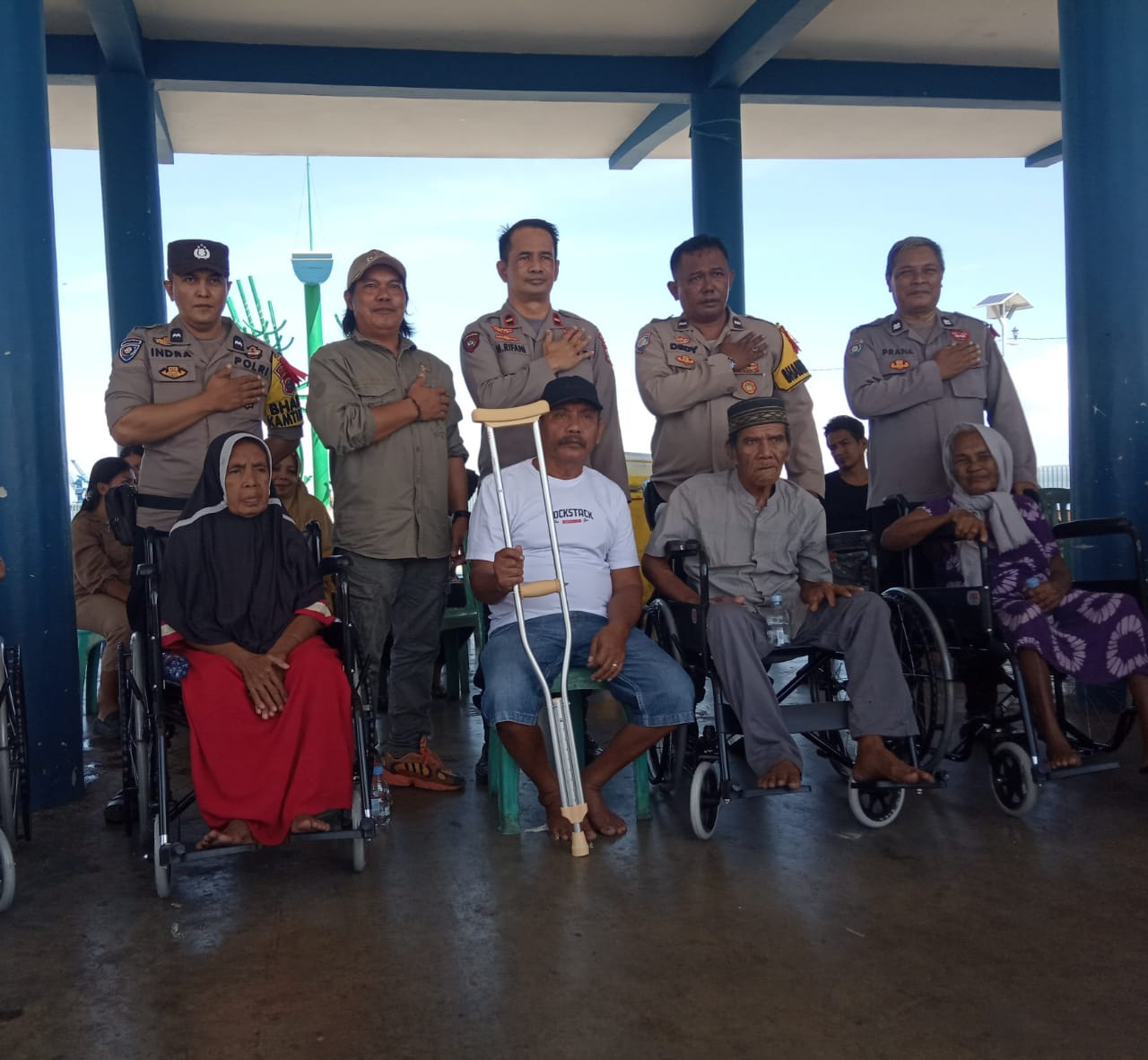 Pembagian kursi roda dan tongkat itu kemudian dilanjutkan oleh Kapolres Kotabaru melalui Kapolsek Pulau Laut Utara yang sebelumnya didata oleh masing-masing Bhabinkamtibmas desa.