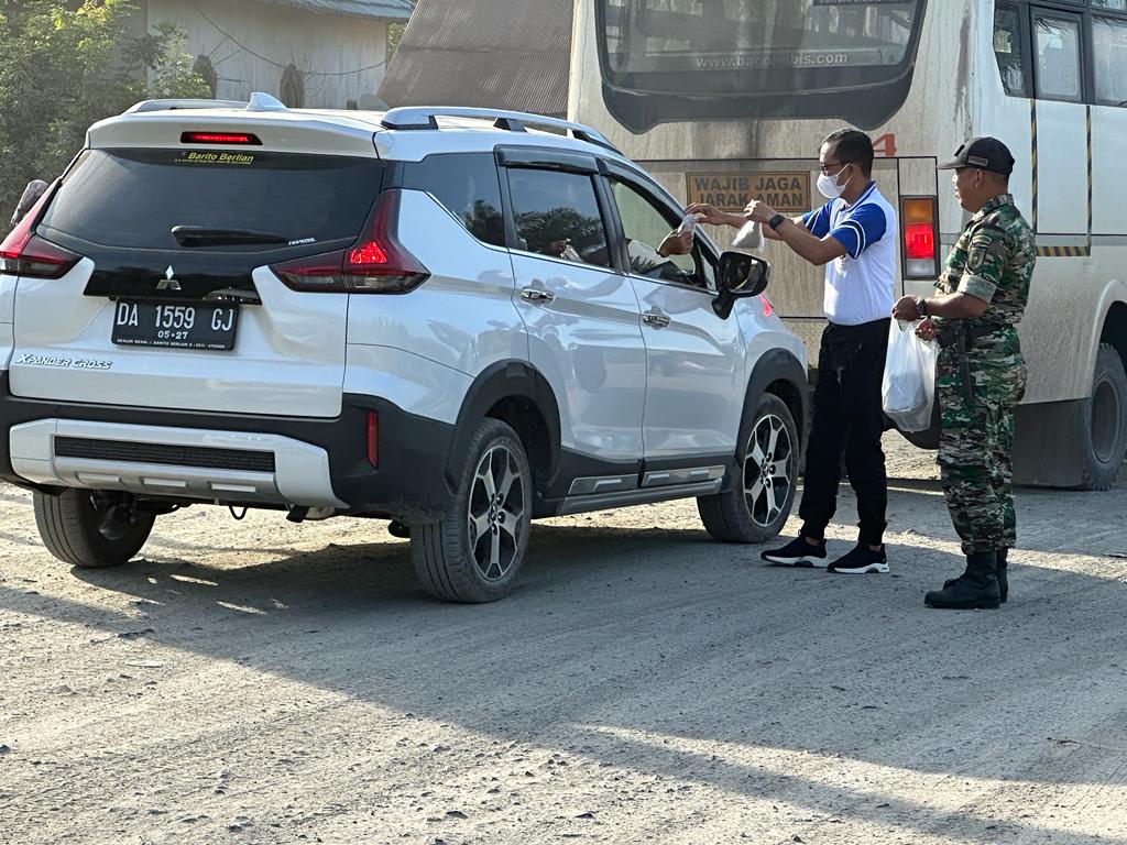 Kapolsek Satui Turun ke Jalan Alternatif Km 171 Bagikan Nasi Bungkus