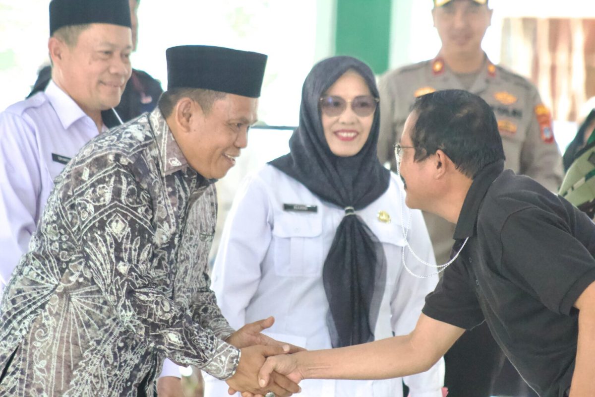 Wakil Ketua DPRD Tanah Bumbu, H. Hasanuddin (Kiri), bersalaman dengan salah satu undangan saat pembukaan Diklat Calon Paskibraka 2025, Minggu (03/08/2025).