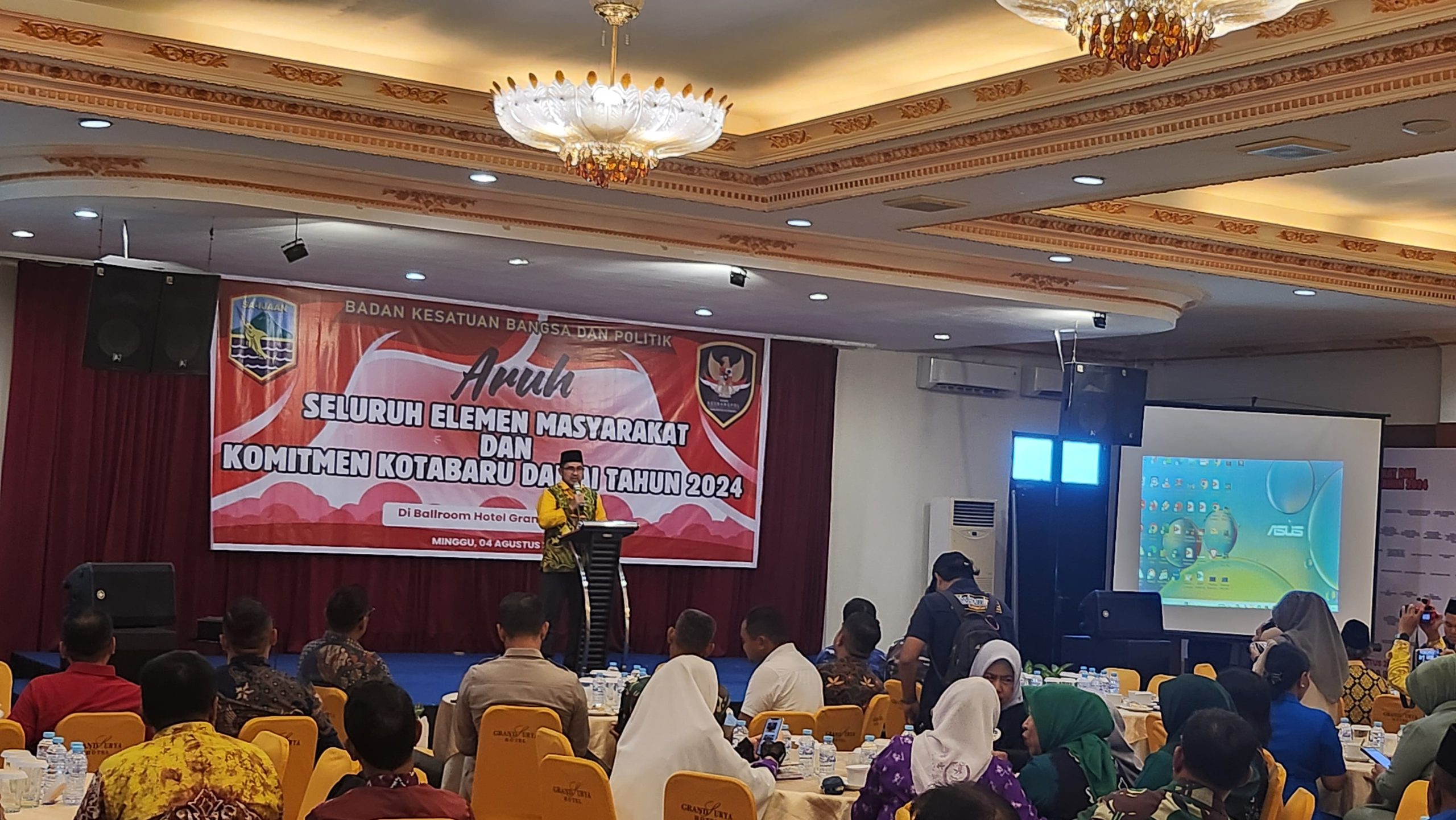 Kotabaru – Kesbangpol Kotabaru melaksanakan kegiatan Aruh bersama seluruh elemen Masyarakat dan Komitmen Pilkada Damai Tahun 2024 di sebuah hotel ternama di Kotabaru Minggu, (4/8/2024).