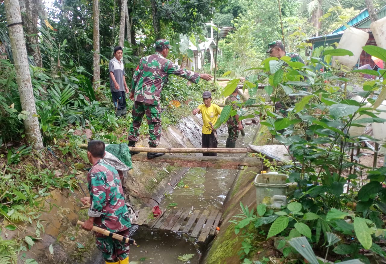 Kegiatan yang dipimpin langsung oleh Danramil 1002-03/Haruyan Kapten Czi M. Singgih ini difokuskan pada pembersihan saluran air agar aliran tetap lancar, sehingga tidak menyebabkan genangan di area permukiman maupun lahan pertanian warga.