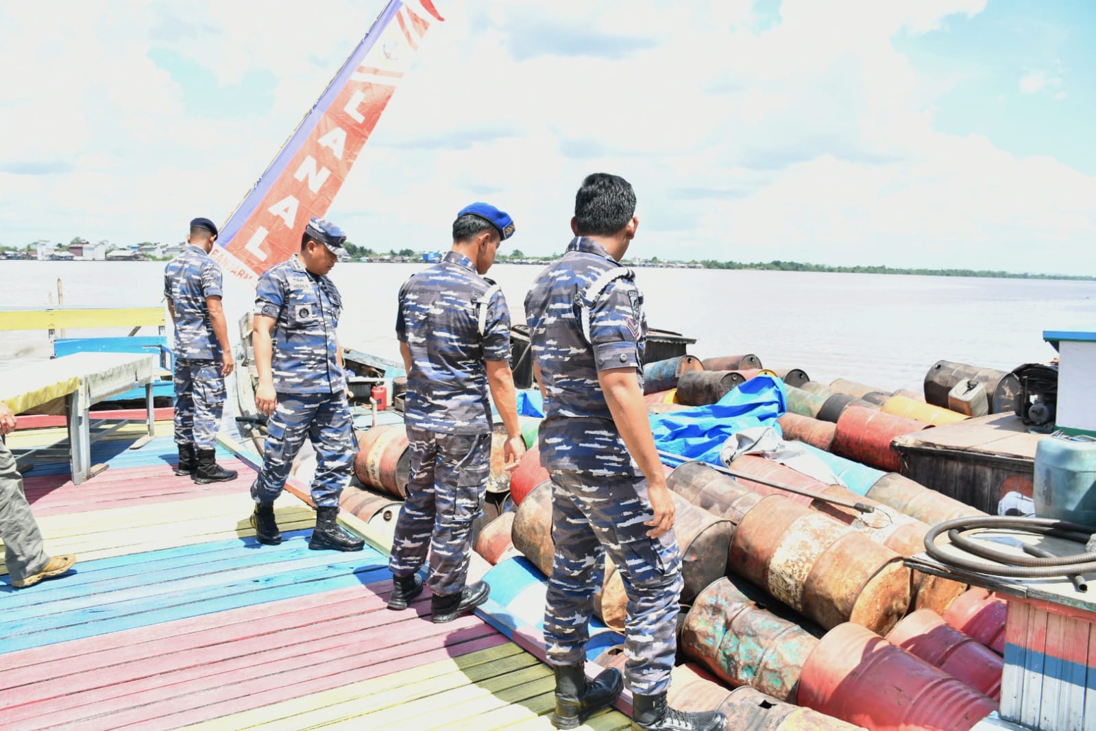 Selanjutnya tim dengan menggunakan sarana Patroli Keamanan Laut (Patkamla) Lanal Banjarmasin bergerak dari dermaga Alpung Trisakti Lanal Banjarmasin menuju perairan Sungai Kapuas dan melaksanakan pemeriksaan terhadap 2 unit kapal yang dimaksud.