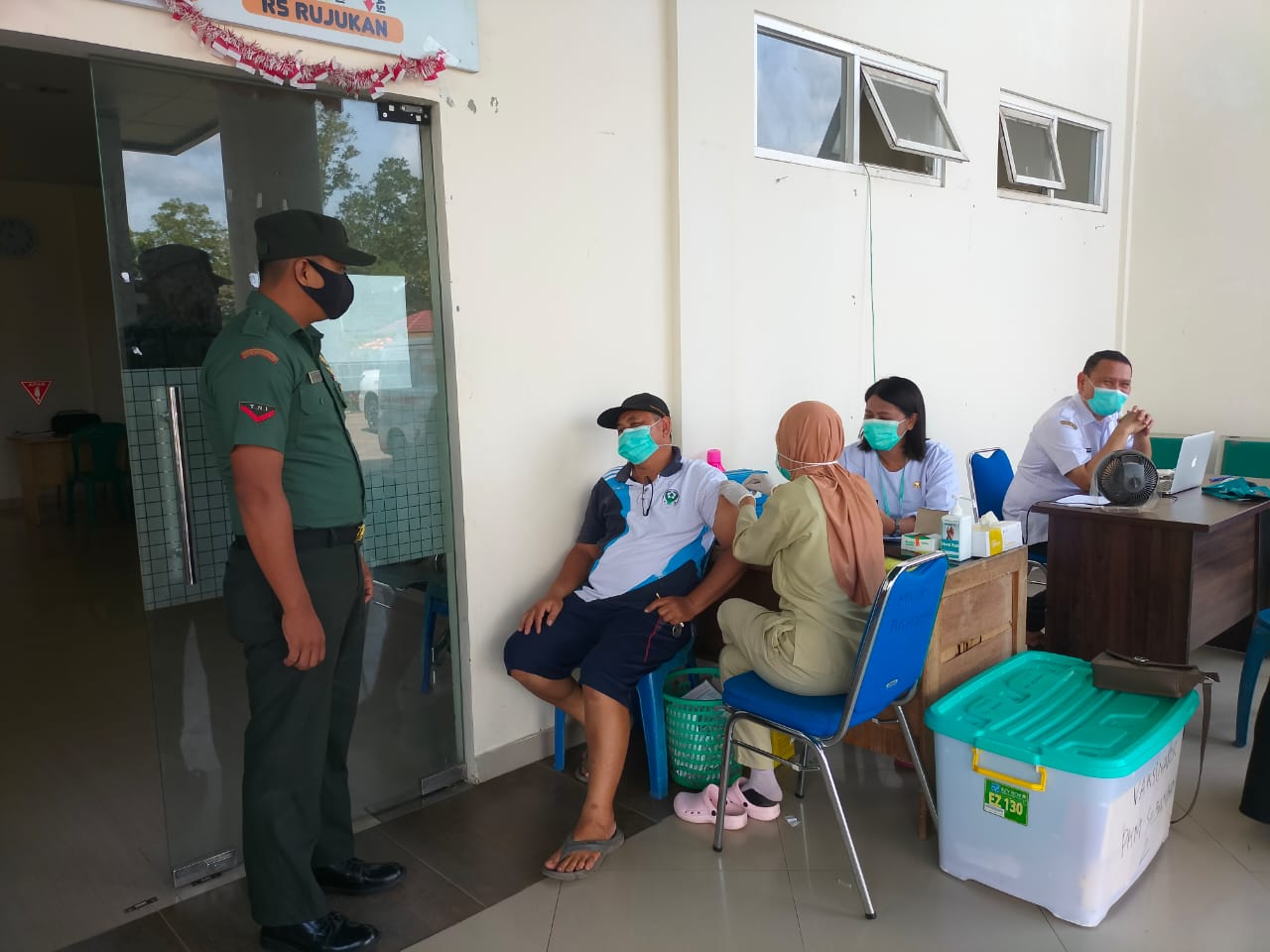 Letkol Inf Aldin Hadi,S.H.,M.Tr (Han), Dandim 1022/Tnb, yang diwakili oleh Danramil Angsana, Kapten Inf Aries Purwanto Handoyo menyampaikan Babinsanya secara aktif tetap mendampingi kegiatan vaksinasi Covid-19 diwilayahnya masing-masing.