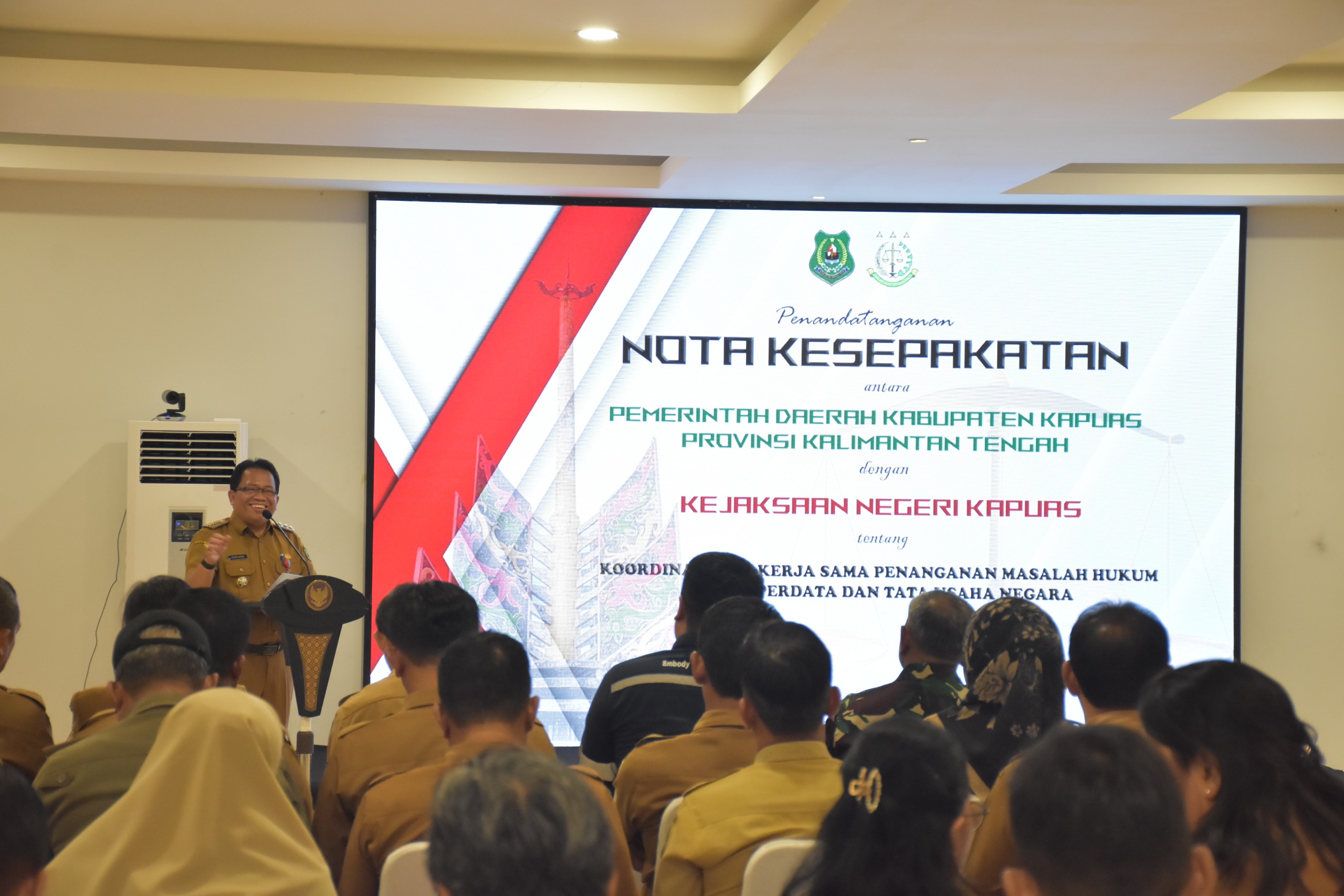 Lebih lanjut dirinya mengajak seluruh jajaran Pemerintah Kabupaten Kapuas untuk bersama-sama berkerja sama dengan selalu mengedepankan komunikasi untuk mencari solusi atas permasalahan hukum yang dihadapi.