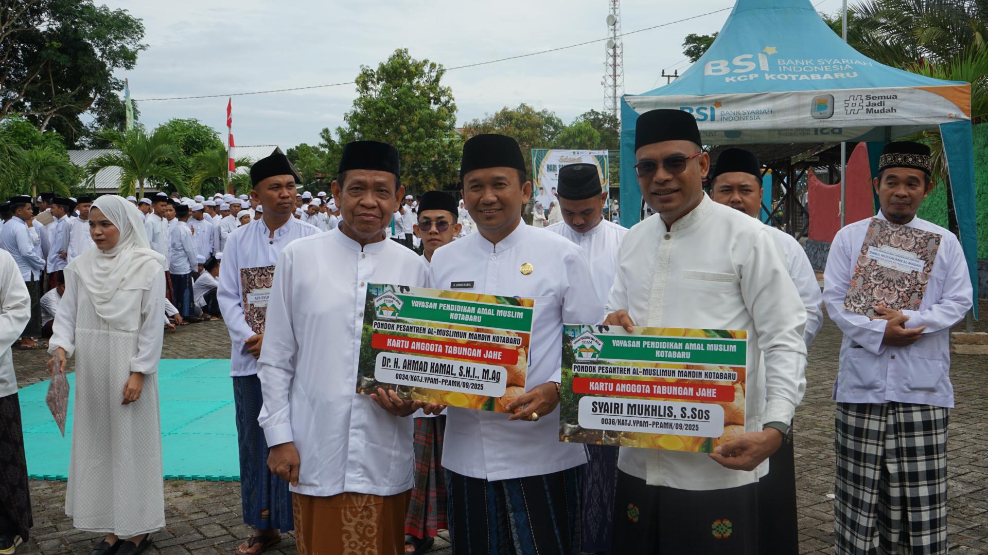 Selain itu, Ketua Yayasan Pendidikan Amal Muslim Kotabaru, Ir. Aris Munandar, M.P., menyerahkan kartu anggota Tabungan Jahe kepada Wakil Bupati dan Kepala Kantor Kementerian Agama Kotabaru sebagai simbol dukungan gerakan ekonomi pesantren.