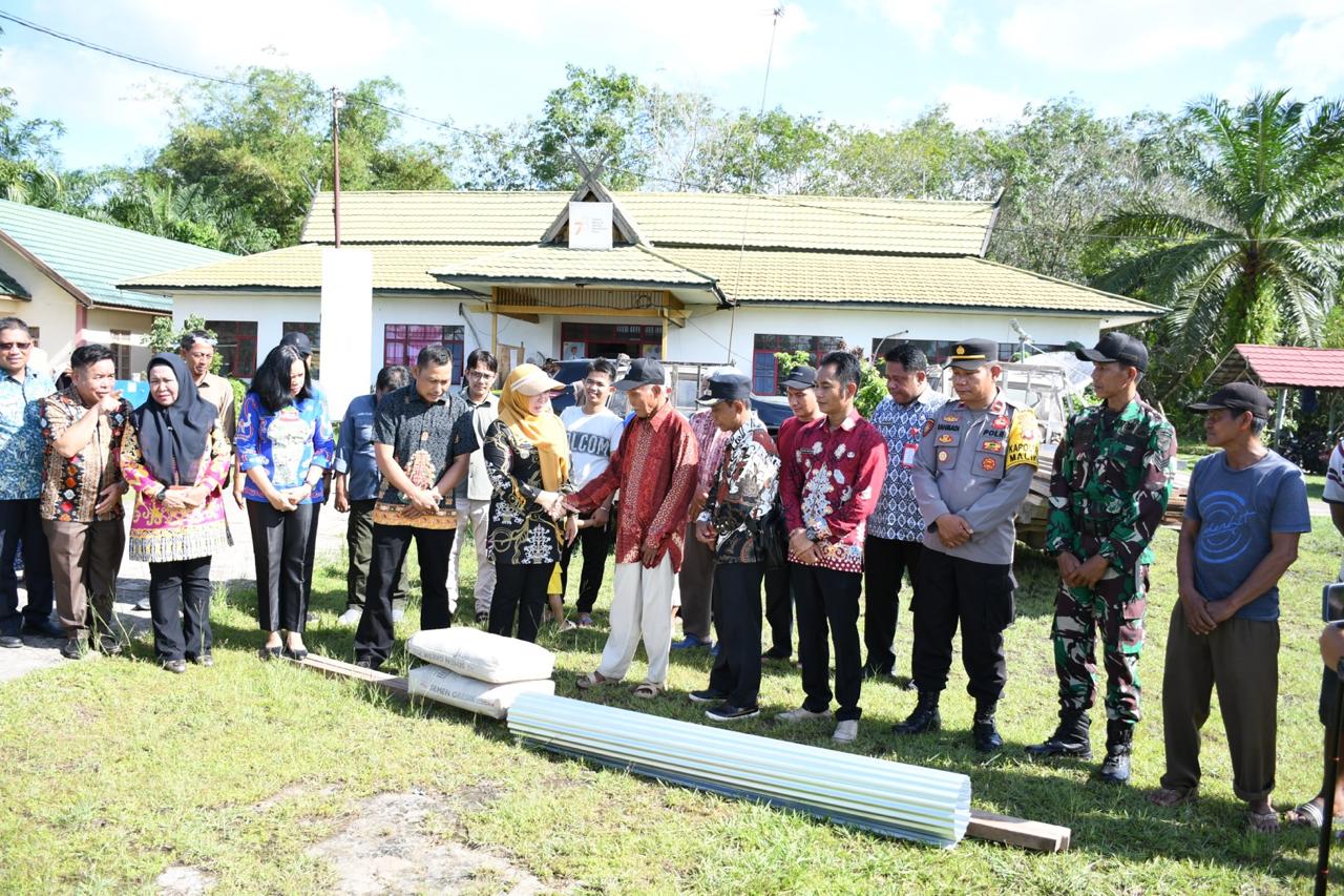 Pj Bupati Pulpis Nunu Andrani di dampingi Kalaksa BPBD Kabupaten Pulang Pisau Ossa Maliki secara simbolis menyerahkan bantuan bahan bangunan kepada korban kebakaran Pasar Minggu