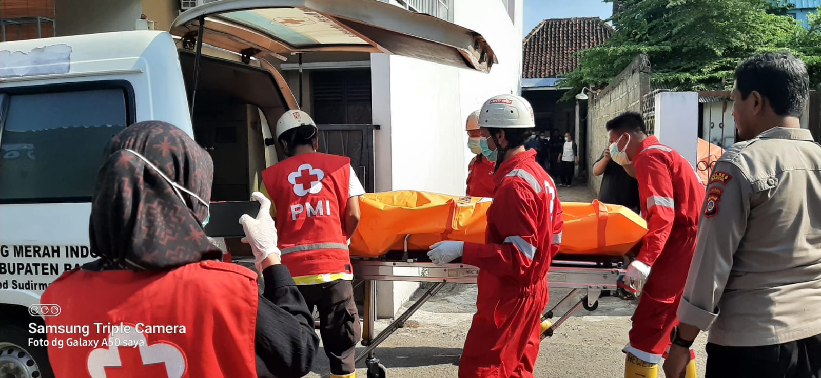 Petugas yang datang ke lokasi kemudian melalukan pemeriksaan pada tubuh korban.