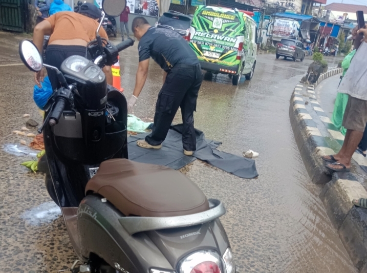 Peristiwa tersebut terjadi tepat di seberang Klinik SMS. Sepeda motor Yamaha Mio bernomor polisi DA 4059 ZAD diduga terserempet bagian sisi kiri truk tronton tangki pengangkut solar bernomor polisi AB 9367 NA yang melaju dari arah yang sama.
