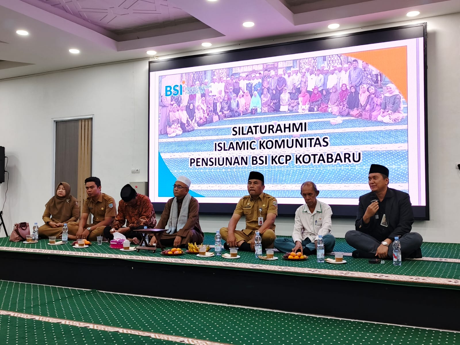 Pensiunan BSI Kotabaru menghadiri kegiatan silaturahmi dan edukasi keuangan digital di Masjid Apung Kotabaru.