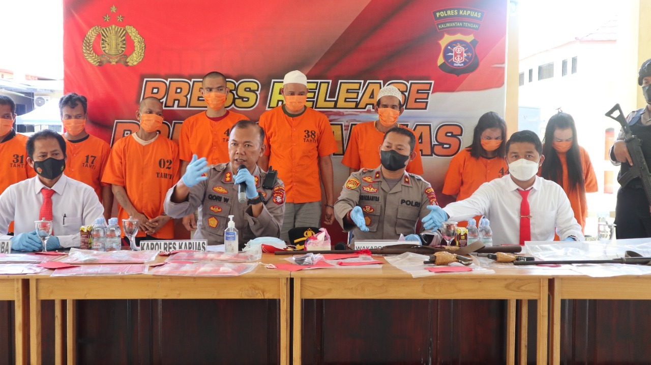 Bacakabar.id – Kuala Kapuas, Kepolisian Resor (Polres) Kapuas Polda Kalteng berhasil mengungkap kepemilikan senjata api (Senpi) rakitan beserta ratusan gram Narkotika jenis Sabu dengan total tersangka sebanyak 8 orang yang terdiri dari 6 orang pria dan 2 wanita yang salah satunya residivis.