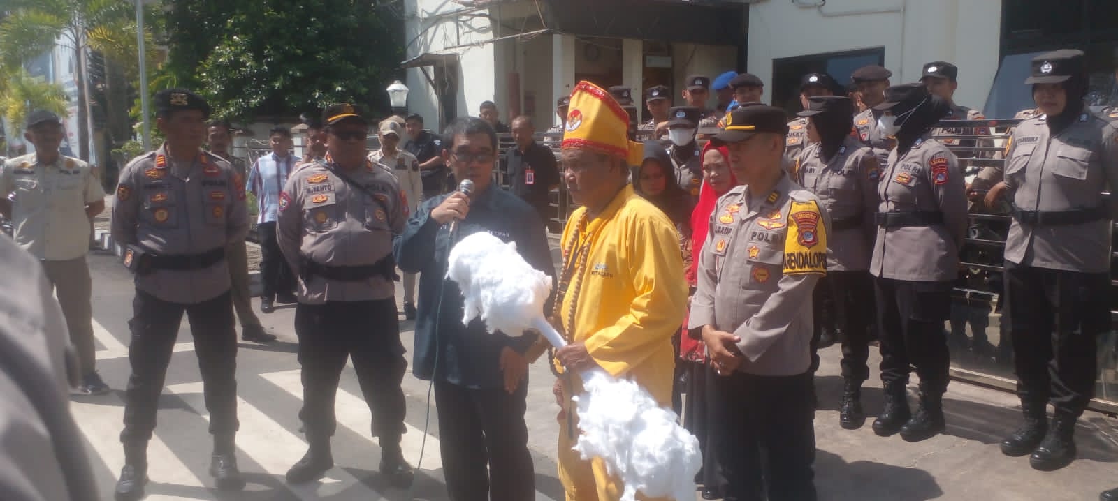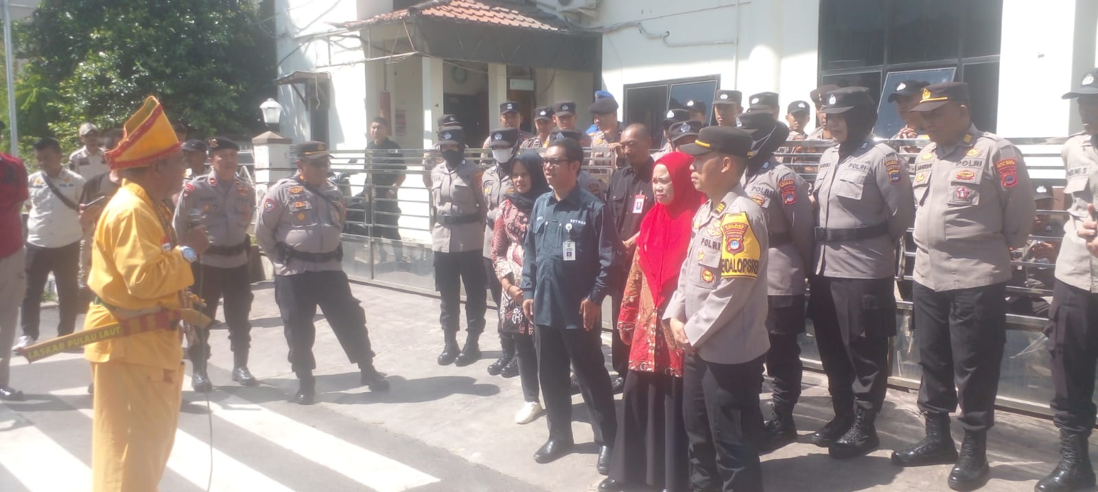 Kabag Ops Polres Kotabaru, AKP Dr. Abd. Rauf, S.I.K., M.H., CPHR., CBA, mengapresiasi jalannya aksi yang tetap kondusif.