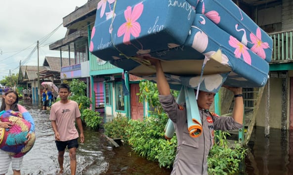 Sambungnya, anggota polri bukan hanya membantu evakuasi warga, tapi juga turut membantu mengevakuasi barang milik warga yang terdampak banjir.