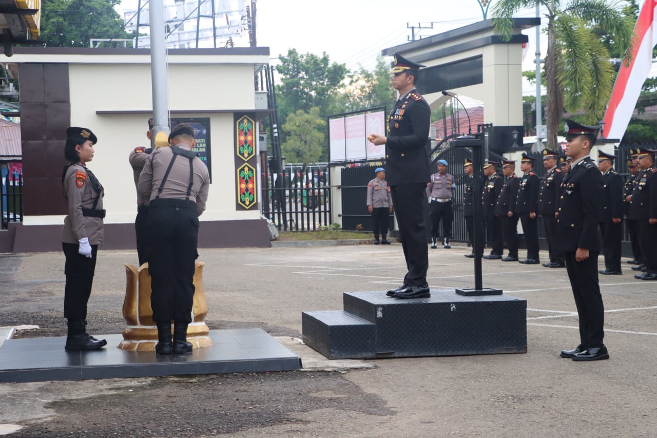 Kapolres Tabalong AKBP Wahyu Ismoyo J., S.I.K., M.H., M.Tr.Opsla. bertindak sebagai inspektur upacara. Peserta terdiri dari Waka Polres Kompol H. Hasannudin, S.H., pejabat utama, perwira, bintara, dan ASN Polres Tabalong.