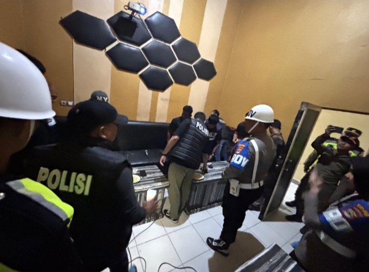 Personel gabungan Polres Tanah Bumbu saat Patroli tempat Karaoke dalam Operasi Sikat Intan 2025. (Sumber: Dok. Humas Polres Tanah Bumbu)