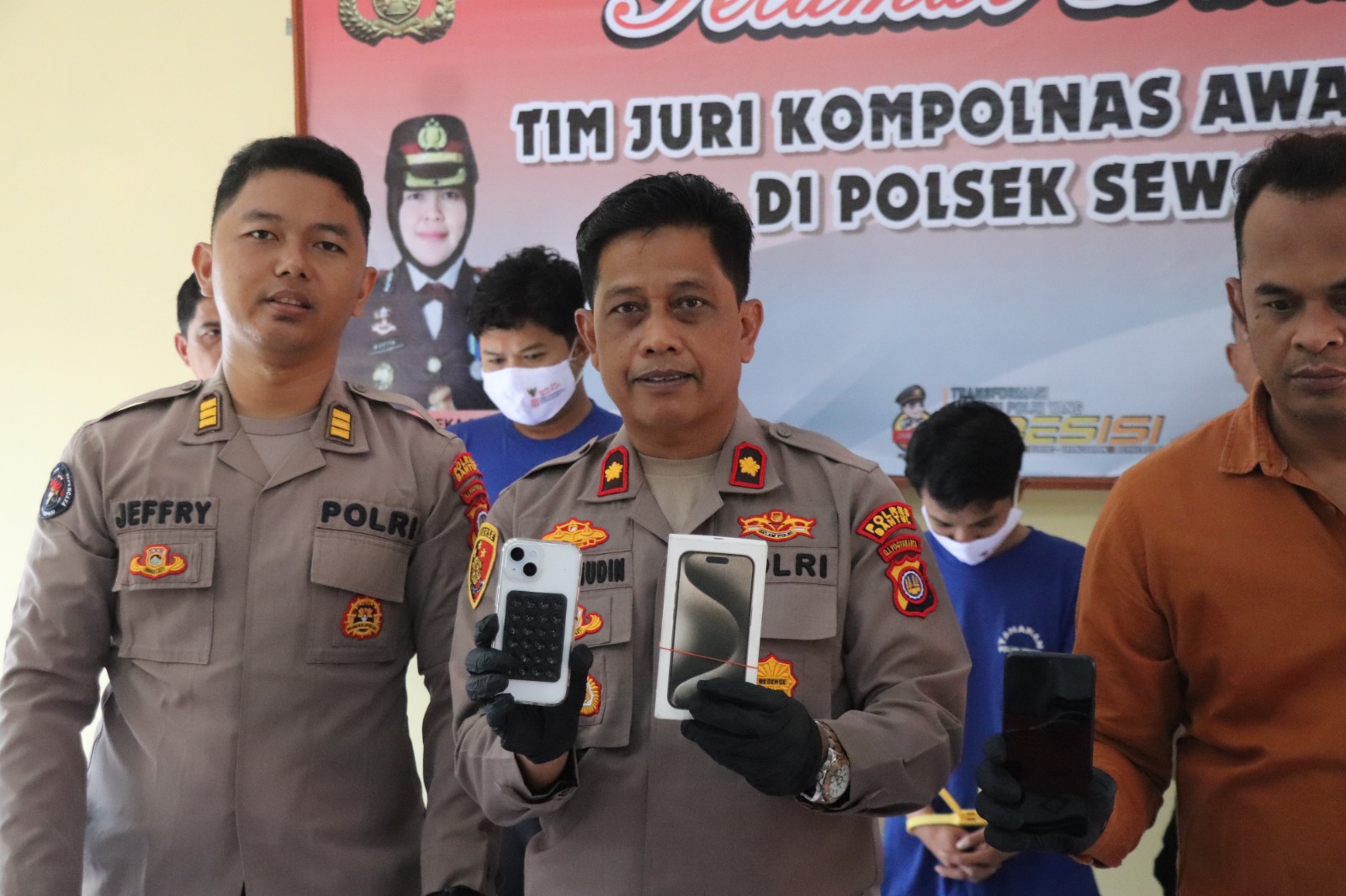 “Petugas menangkap dua saksi, AA dan IK, yang diminta pelaku untuk menjualkan iPhone. Dari keduanya, kami mendapat informasi keberadaan pelaku,” jelas Sultonudin.