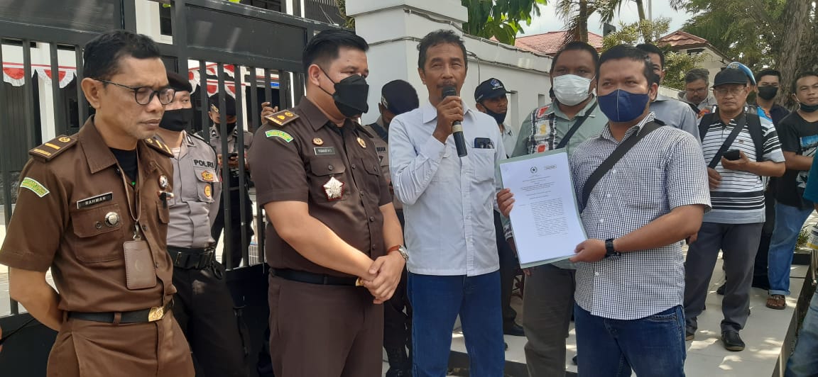 Setibanya didepan kantor Kejati Kalsel para pengunjuk rasa disambut oleh Kepala Seksi Penerangan Umum Kejati Kalsel, Romadu Novalino, beserta jajarannya.