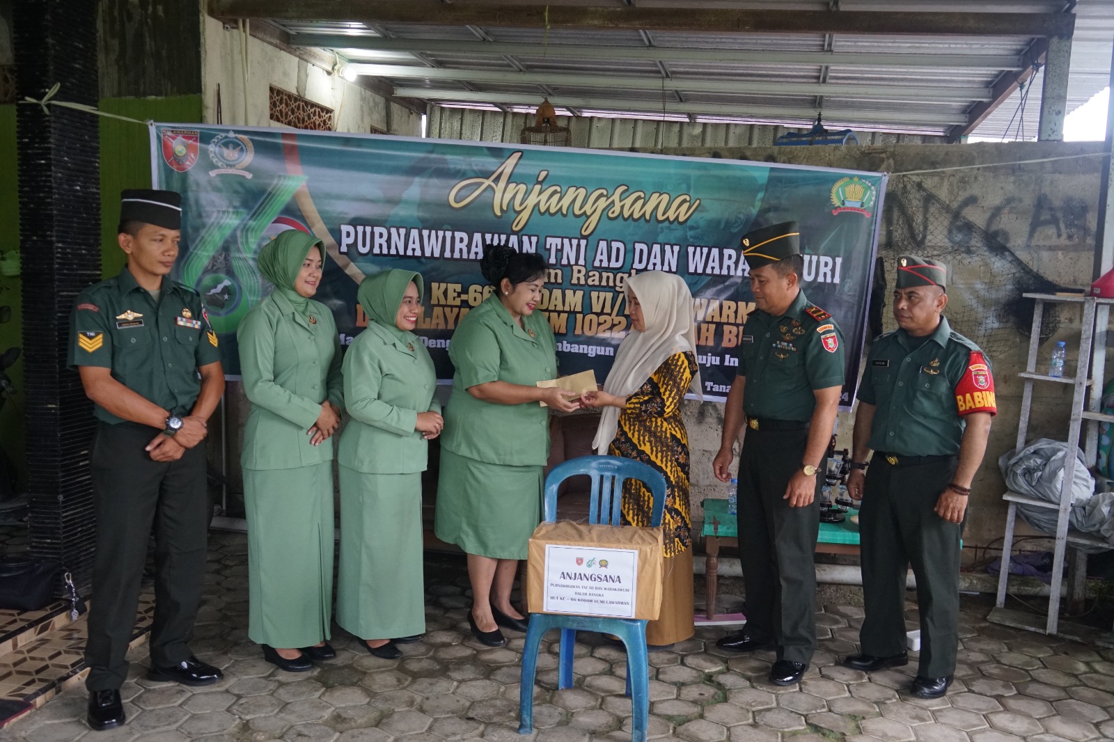 Pada kesempatan itu Dandim 1022/Tnb letkol inf Boni Berdian melalui Danramil 1022-08/Mentewe Letda Inf Horensyah mengatakan, kegiatan anjangsana ini merupakan salah satu rangkaian kegiatan yang dilakukan dalam rangka memperingati HUT Kodam VI/Mulawarman ke-66,